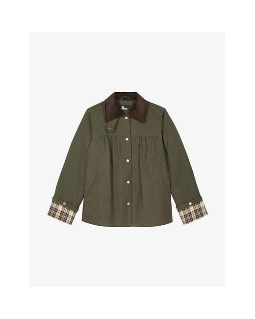 Women's Green Corduroy-Collar Relaxed-Fit Cotton Jacket