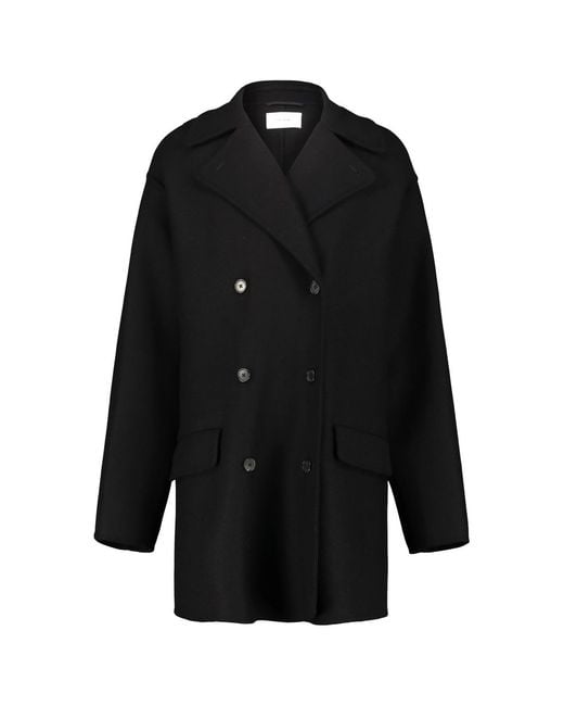 The Row Azuron double-breasted coat in wool and cashmere-blendwith ribbed texture, loose fit, relaxed dropped shoulders, unlined. GTIN code:10141 W4067 Colour: black