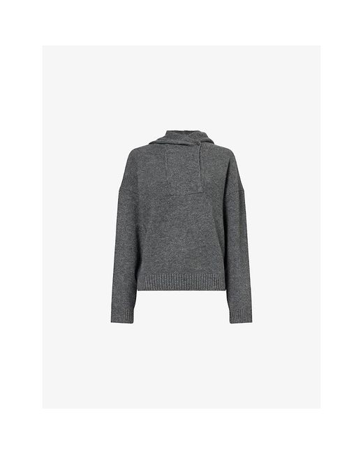 Women's Grey Button-Up Relaxed-Fit Wool-Blend Hoody