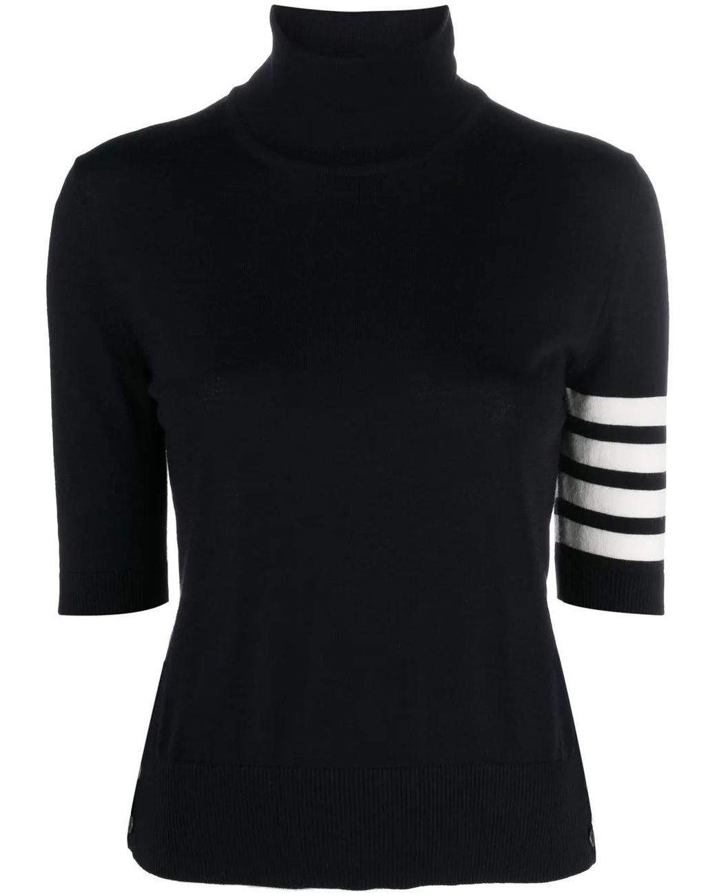 Blue/white virgin wool blend fine knit side stripe detailing RWB stripe roll neck short sleeves straight hem Size: 36. Gender: Female. Material:Polyamide/Virgin Wool.