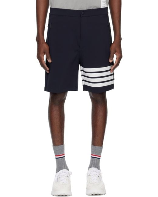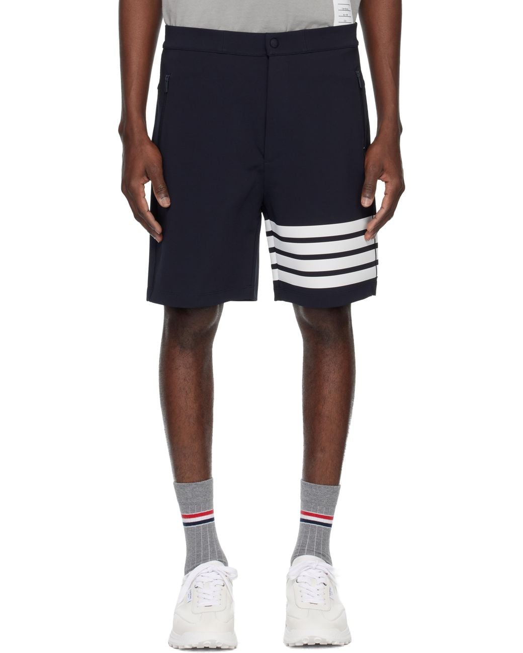 Stretch viscose-blend jersey shorts. · Partially elasticized waistband · Three-pocket styling · Zip fly · Stripes at cuff · Tricolour grosgrain flag at back waistband Supplier color: Navy Colour: blue