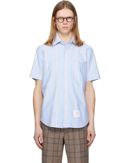 Men's Blue Thom E Straight Fit School Stripe Short Sleeve Shirt