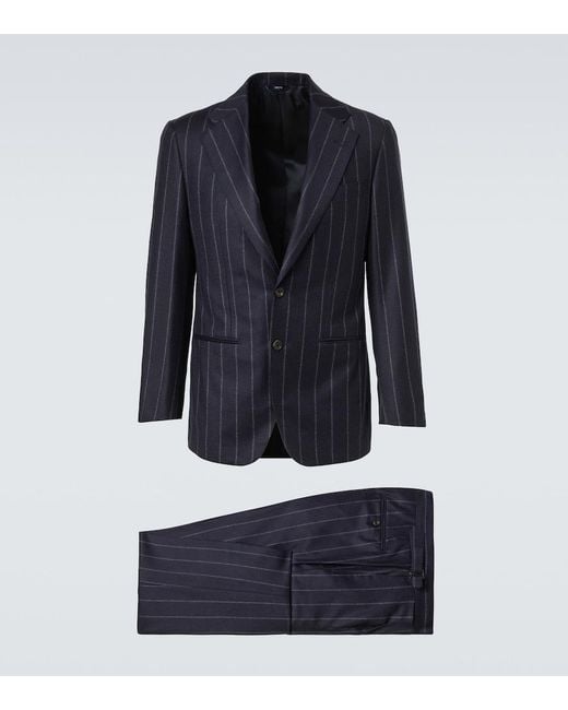 Men's Blue Chalk Stripe Wool And Cashmere Suit