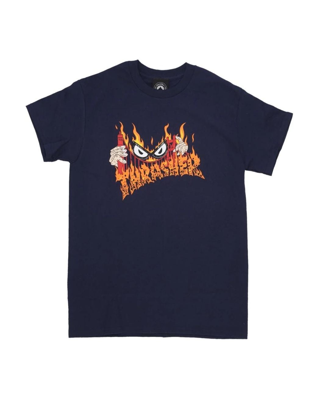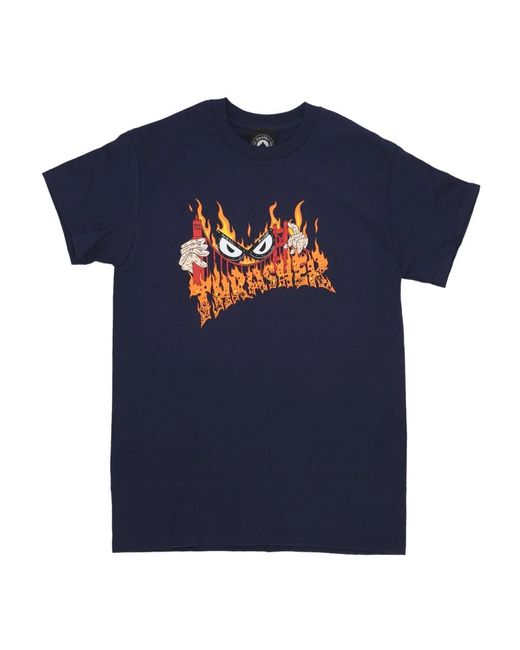 Elevate your street style with this Thrasher Short Sleeve Crew Neck T-shirt. Featuring a collaboration with Neckface, this regular fit tee showcases unique Neckface artwork on the front. Crafted from 100% Cotton, this tee is both hand and machine washable. Check the label for care instructions. Colour: blue