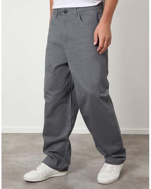 Men's Grey Baggy Fit 5 Pocket Chino Trousers