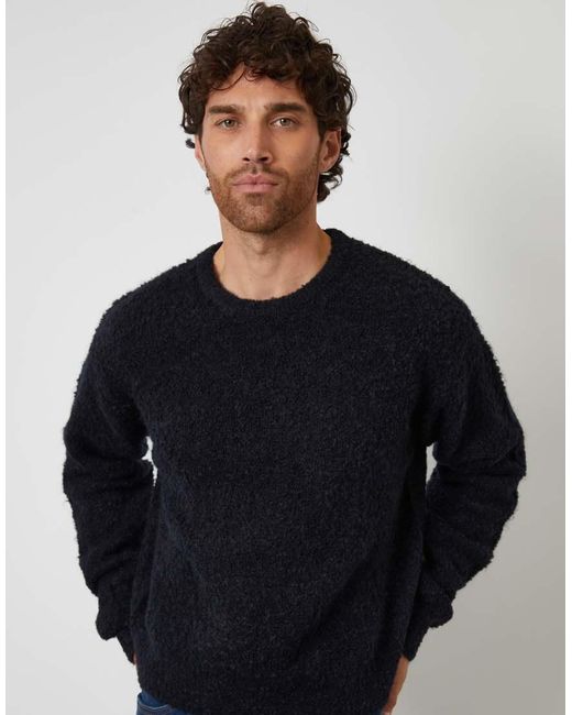 Men's Black Fluffy Knit Crew Neck Jumper