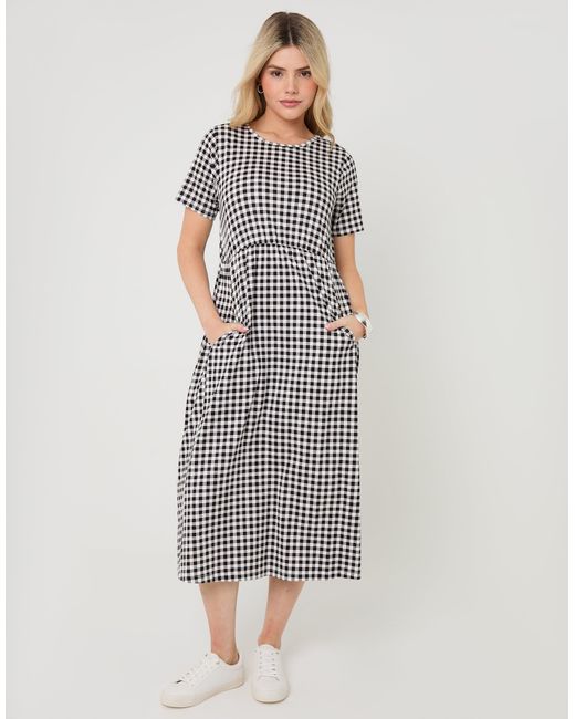 Women's White Gingham Jersey Midi Smock Dress With Pockets