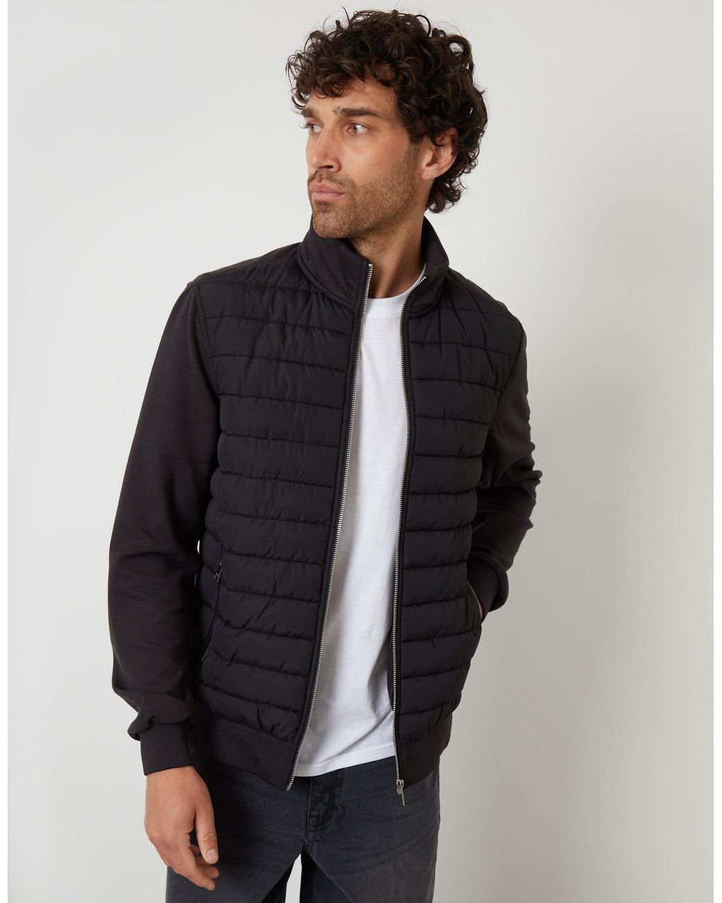Men's Grey Quilted Hybrid Funnel Neck Jacket