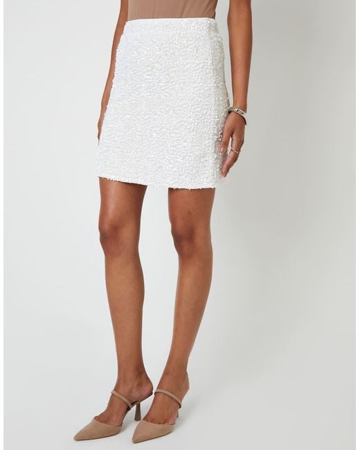 Women's White Sequin Velour Mini Skirt