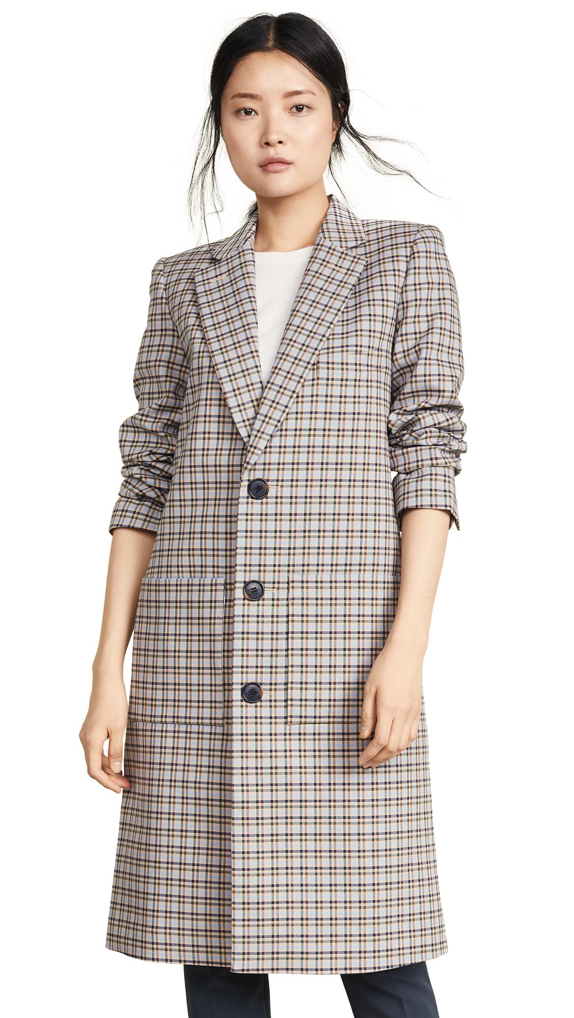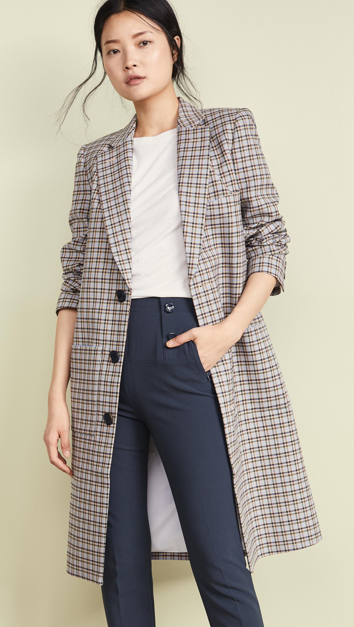 Go to ShopbopRefined in a heritage plaid, this lab-inspired overcoat boasts sharp, in-charge shoulders and roomy patch pockets. 45" length (size 8). Front button closure. Notched lapels. Front patch pockets. Button cuffs. Back vent. Lined. 58% cotton, 40% viscose, 2% elastane. Dry clean. Via C. Cotton. 58% COTTON, 40% VISCOSE, 2% ELASTANE. If between sizes, order one size down.