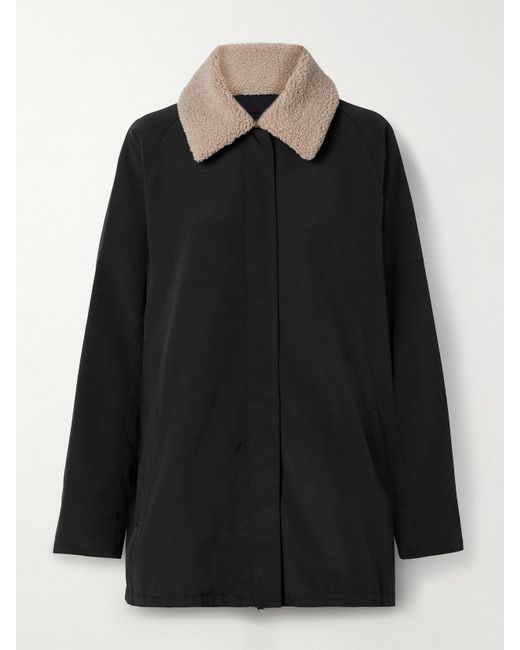 Women's Black Oversized Fleece-Trimmed Canvas Jacket