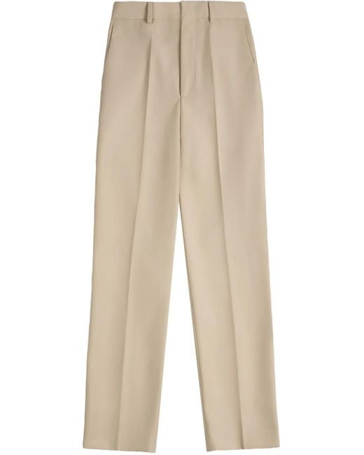 Pressed-Crease Buttoned Straight Trousers - Natural