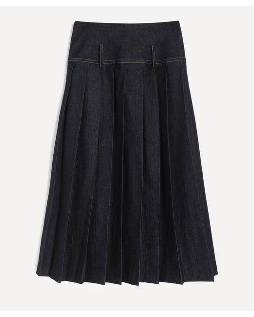 British-nigerian designer Tolu Coker elevates the art of tailoring with the pleated denim drop-waist maxi skirt, a striking piece that fuses sculptural luxury with a commitment to conscious craftsmanship. Crafted from indigo denim, this maxi skirt makes a statement with its a-line shape, dropped waist, and wide pleats that amplify its volume. Style it with the matching denim panelled contour bustier blouse for an elevated double-denim ensemble. Colour: black