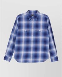 Tom Ford Men's Blue Checked Cotton Western Shirt
