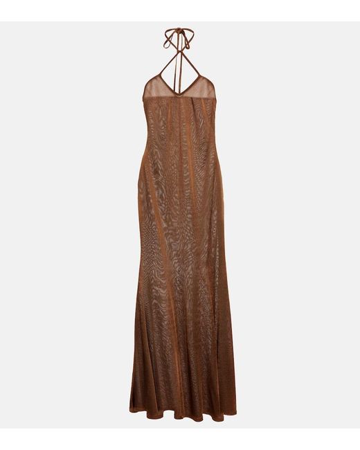 Women's Brown Halterneck Jersey Maxi Dress