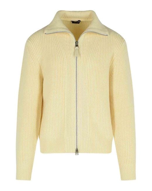 Slim-fit Ribbed Wool And Mohair-blend Zip-up Cardigan - Natural