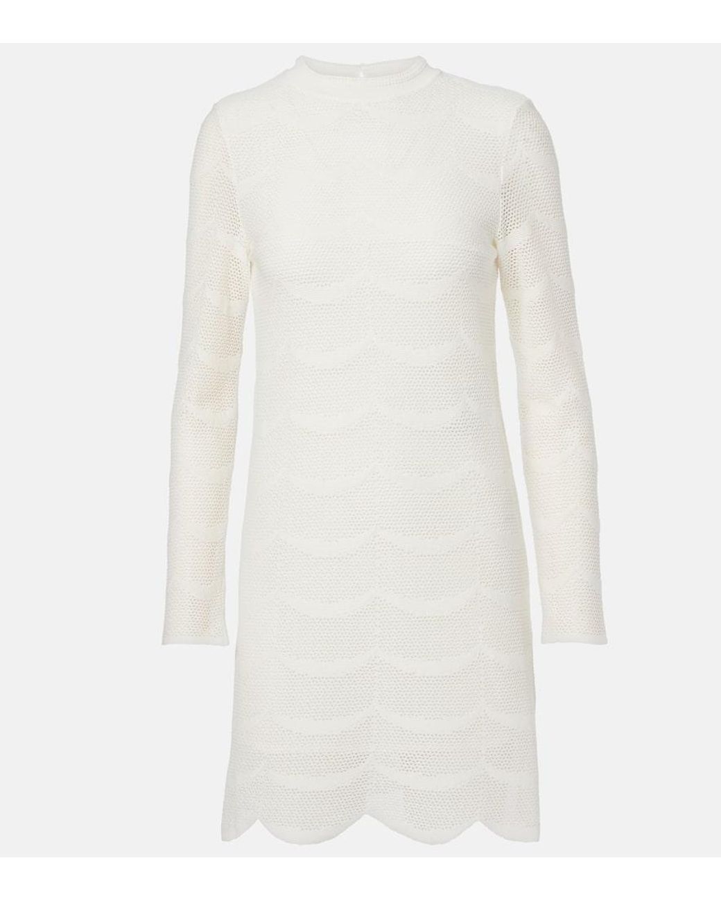Women's White Knitted Scalloped Cotton And Silk Minidress