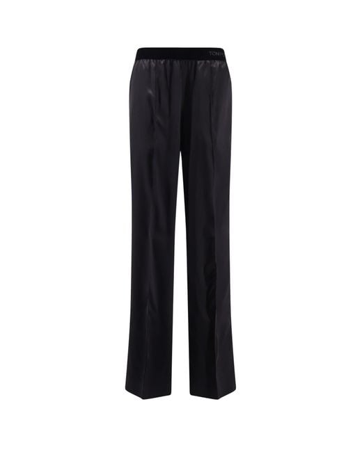 Elastic velvet waistband Embroidered logo Two front pockets Two patch pockets on the back Made in Italy 94% silk, 6% elastane SKU: PAW683FAX881NAA Colour: black