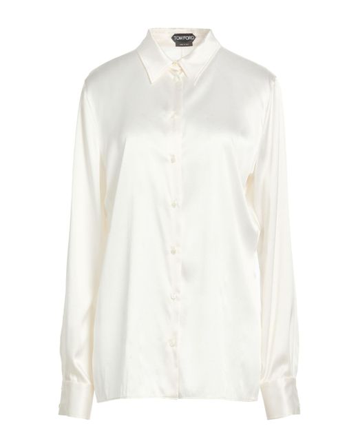 TOM FORD. long shirt, satin, stretchy fabric, plain colour, no appliqués, classic collar, long sleeves, buttoned cuffs, button fastenings, contains non-textile parts of animal origin, dry clean, do not bleach, do not tumble dry. 94% Silk, 6% Elastane.