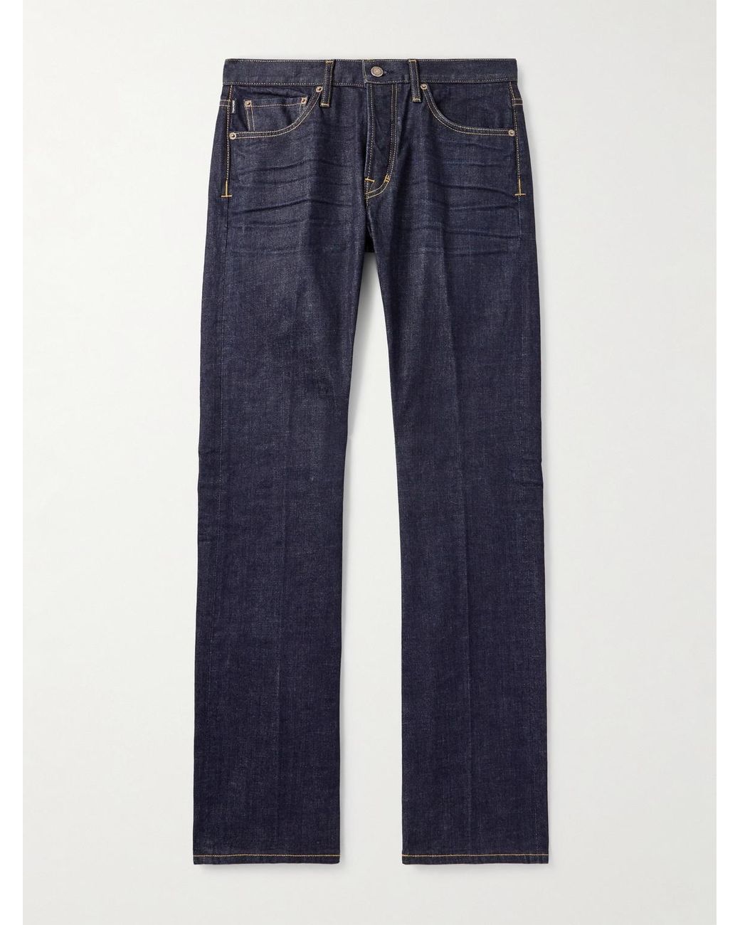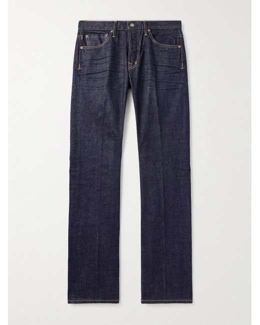 TOM FORD's jeans are made from selvedge denim, prized for its durability and how it develops a unique patina through wear. They have a slim cut and are detailed with signature 'T' stitching along the side seams. Colour: blue