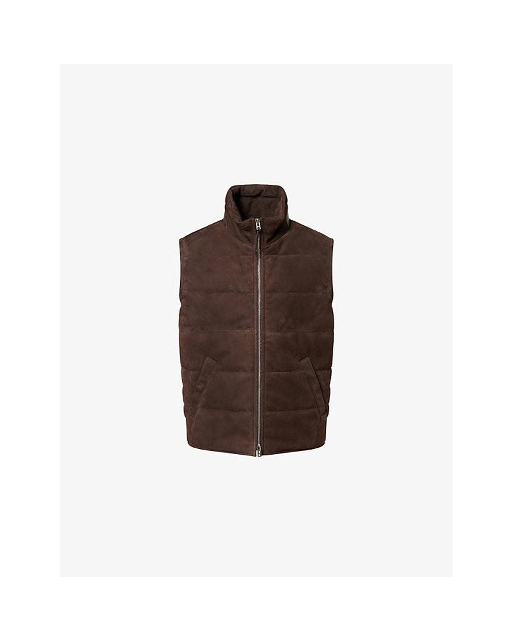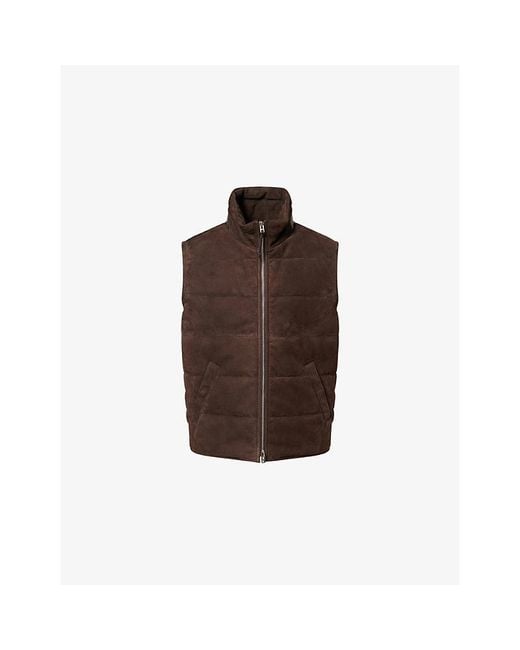 Men's Brown Stand-Collar Lightfill Leather Gilet