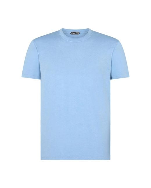 Tom Ford Regular Fit Lyocell-Cotton Jersey T-Shirt is a lightweight crew-neck tee finished with tonal logo embroidery at the hem, designed for comfortable everyday wear. Key attributes: Blue | Clear blue | Lyocell | Lightweight | Soft fabric | Crew neck | Short sleeves | Ribbed round neckline | Tonal logo embroidery at hem | Straight hem | Dimensions & fit: Height 185 cm | Bust/Breast 94 cm | Waist 75 cm | Shoulder 44 cm | Neck 43 cm | Hip Bone 93 cm | Arm length 62 cm | Breast level 26 cm | Knee level 63 cm | Wrist circumference 20 cm | Regular fit | Item in photo corresponds to IT 48 | Mannequin size: IT 48 | Composition & care: 67% Lyocell | 33% Cotton | Dry clean