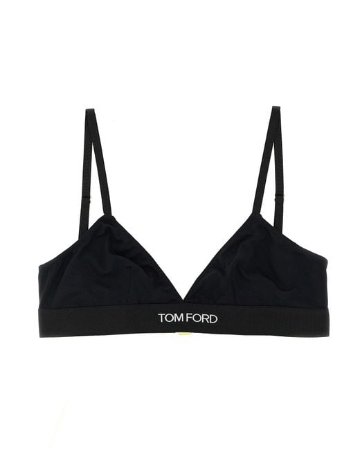 Modal jersey bra, triangle model, adjustable shoulder straps, elastic with contrast jacquard logo on the hem, back hook closure.SpecificationValueBrandTOM FORDComposition97% modal 3% elastaneMade InBosnia and HerzegovinaSize & Fittrue to size fitColorBlack GenderWomenSeasonSpring Summer 2026