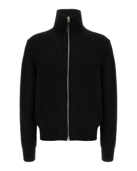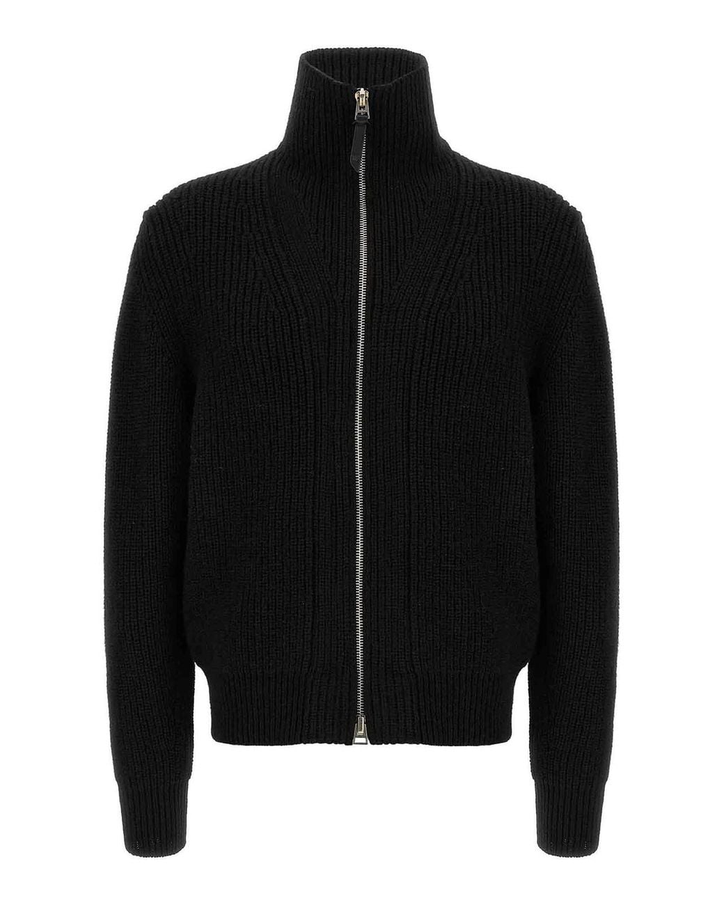 Mohair blend jumper with double tie rod zip maxi rib knit high neck long cuffed sleeves Colour: black
