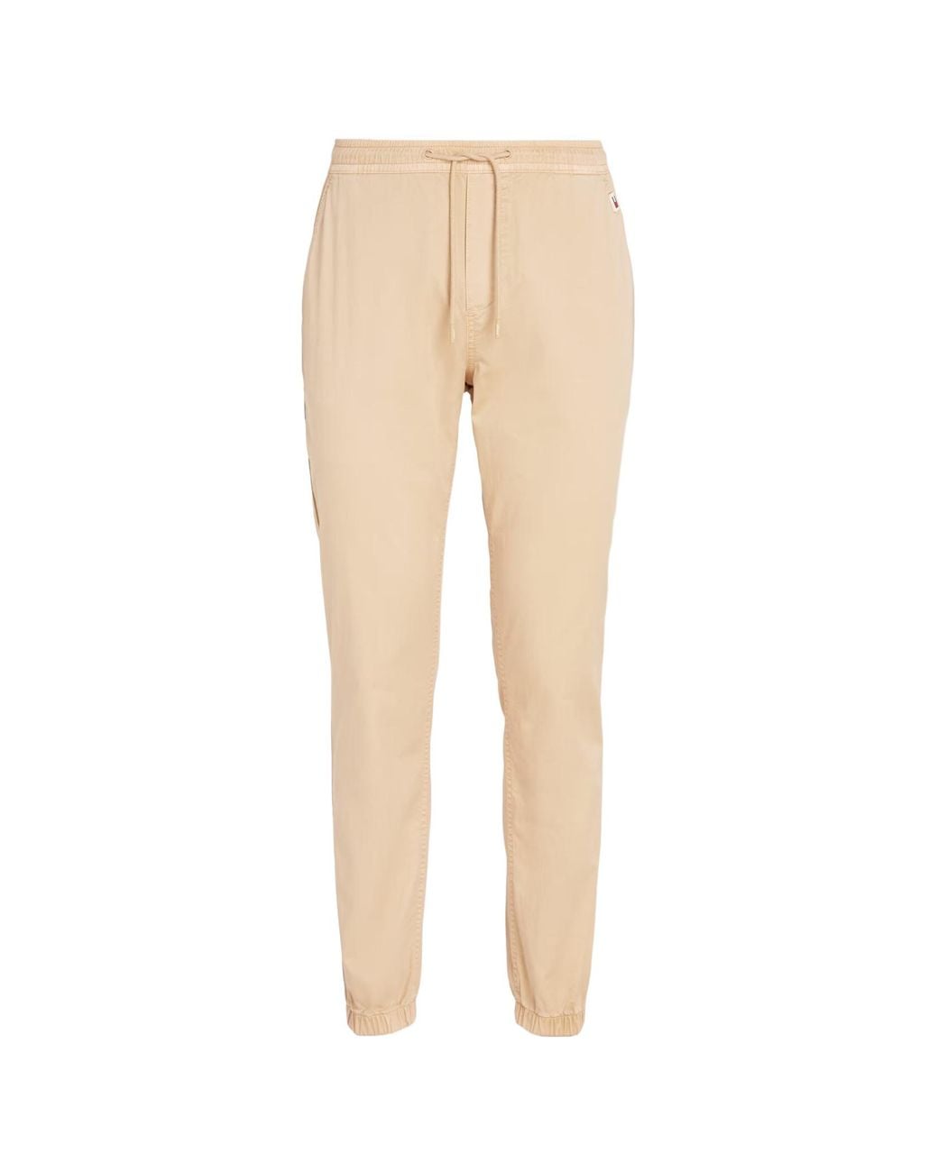 Casual weekends call for these slim fit jogger trousers, made from breathable cotton with a drawstring waist for a flexible fit. Elasticated drawstring waist Two angled side pockets Elasticated ankle cuffs Two single welt pockets at back Tommy Jeans branding Colour: natural
