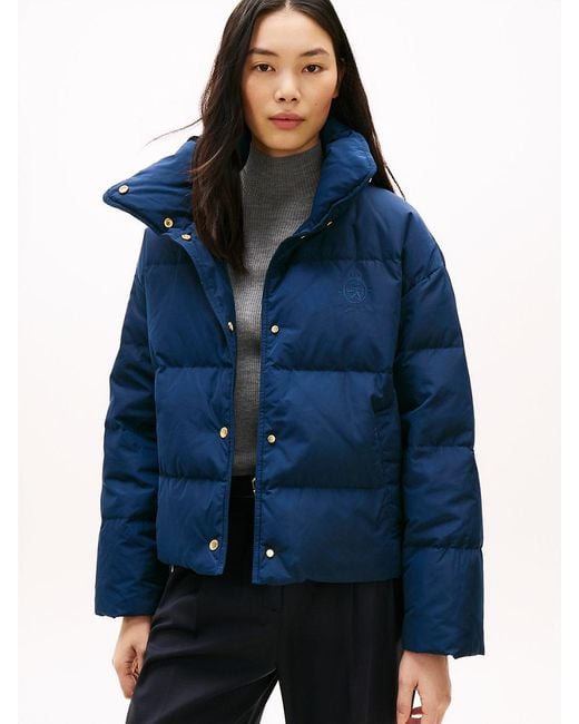 Women's Blue Crest Embroidery Down Puffer Jacket