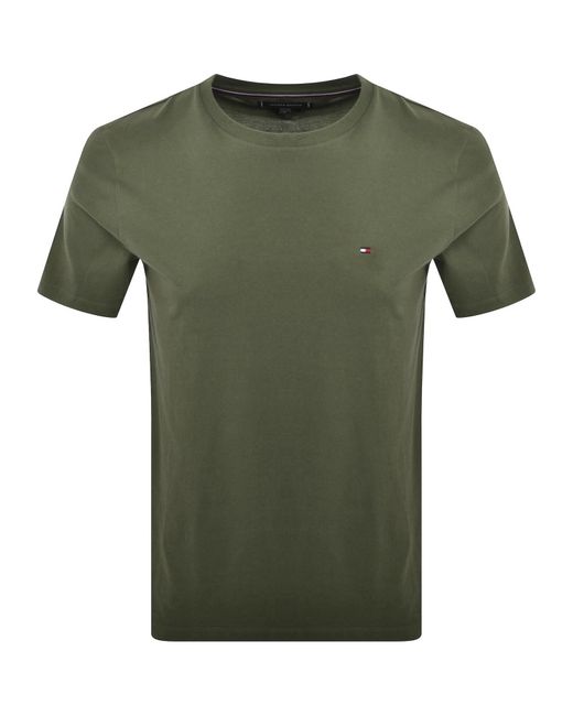 Tommy Hilfiger Essential Solid T Shirt In Battle Green Regular Fit. A soft cotton jersey t shirt with a ribbed crew neck and short sleeves. The signature Tommy Hilfiger flag logo is embroidered on the left of the chest. 100% Cotton. Colour: green