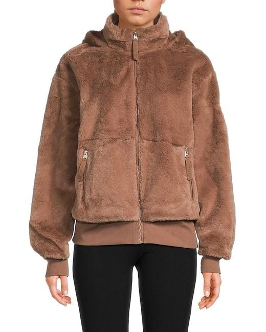 Women's Brown Faux-Fur Hooded Zip Jacket