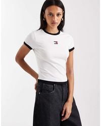 T-Shirts & Vests by Tommy Jeans Crew neck Short sleeves Text embroidery on front Contrast binding trim on neck and sleeves Tommy Jeans logo on back Regular fit. Cotton. Colour: white