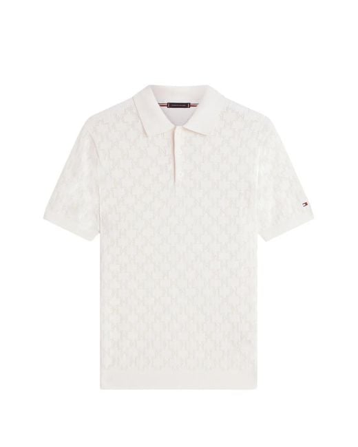 Men's White Monogram-Pattern Open-Knit Jumper