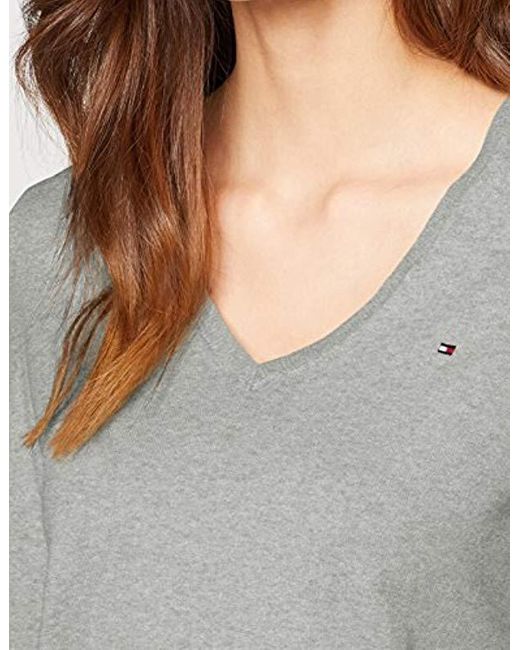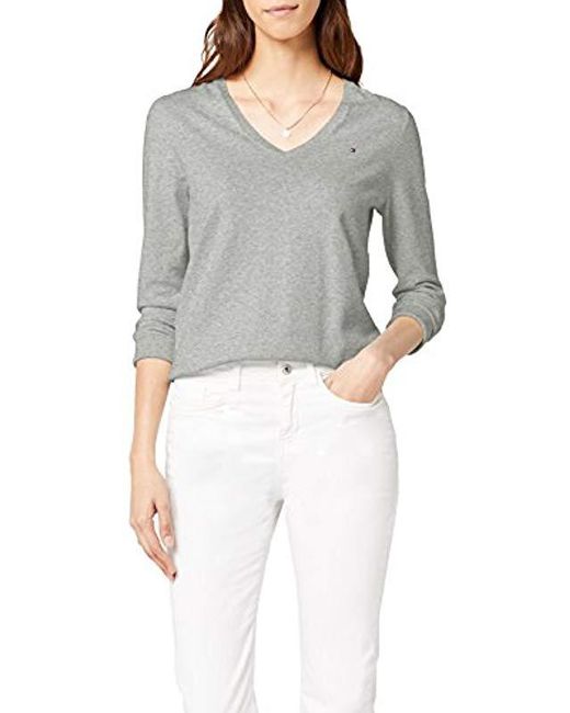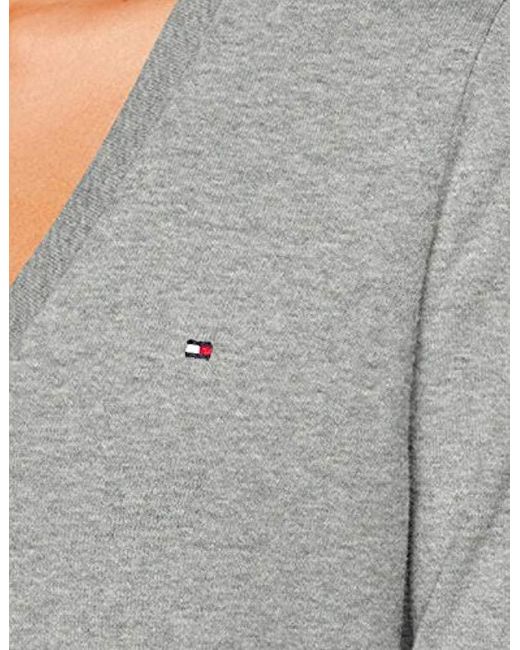 Ribbed v neck cuffs and bottom hem. Tommy Hilfiger flag on the chest. Colour: grey