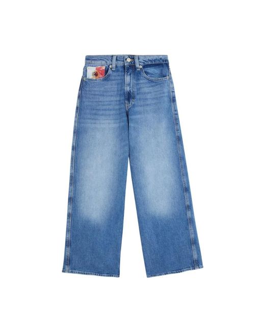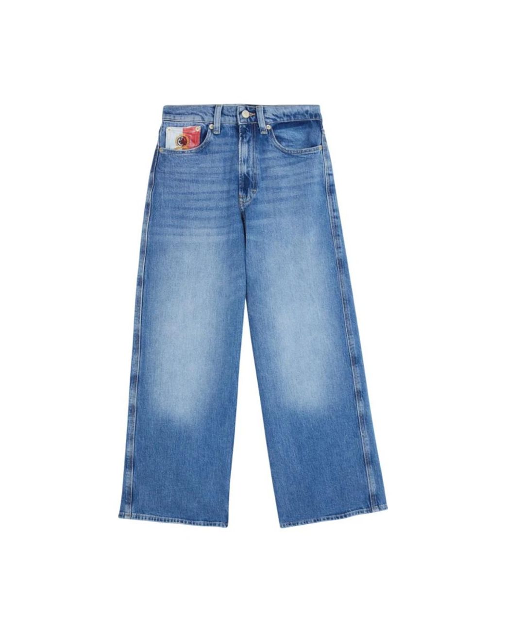 Tommy Jeans presents these straight leg jeans for women in cotton denim. Featuring a five-pocket design with logo applique. Front zip and button closure.