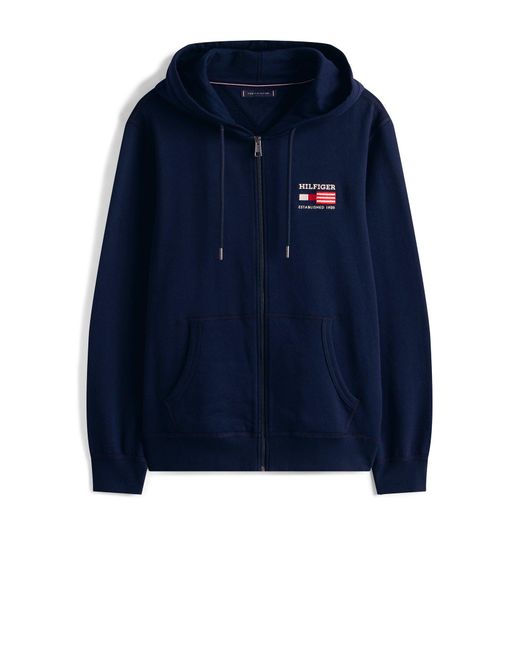 Embroidered Logo Zip-Thru Hoodie - Blue