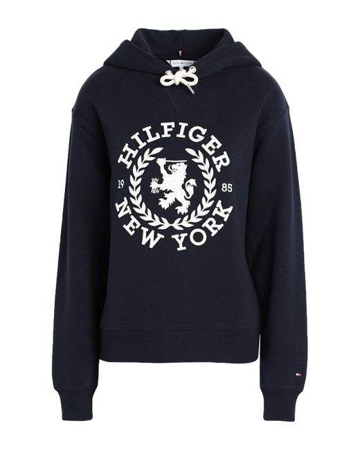 TOMMY HILFIGER. sweatshirt fleece, embroidered detailing, brand logo, plain colour with appliqués, hooded, long sleeves, fleece lining, no pockets. 64% Cotton, 36% Polyester.