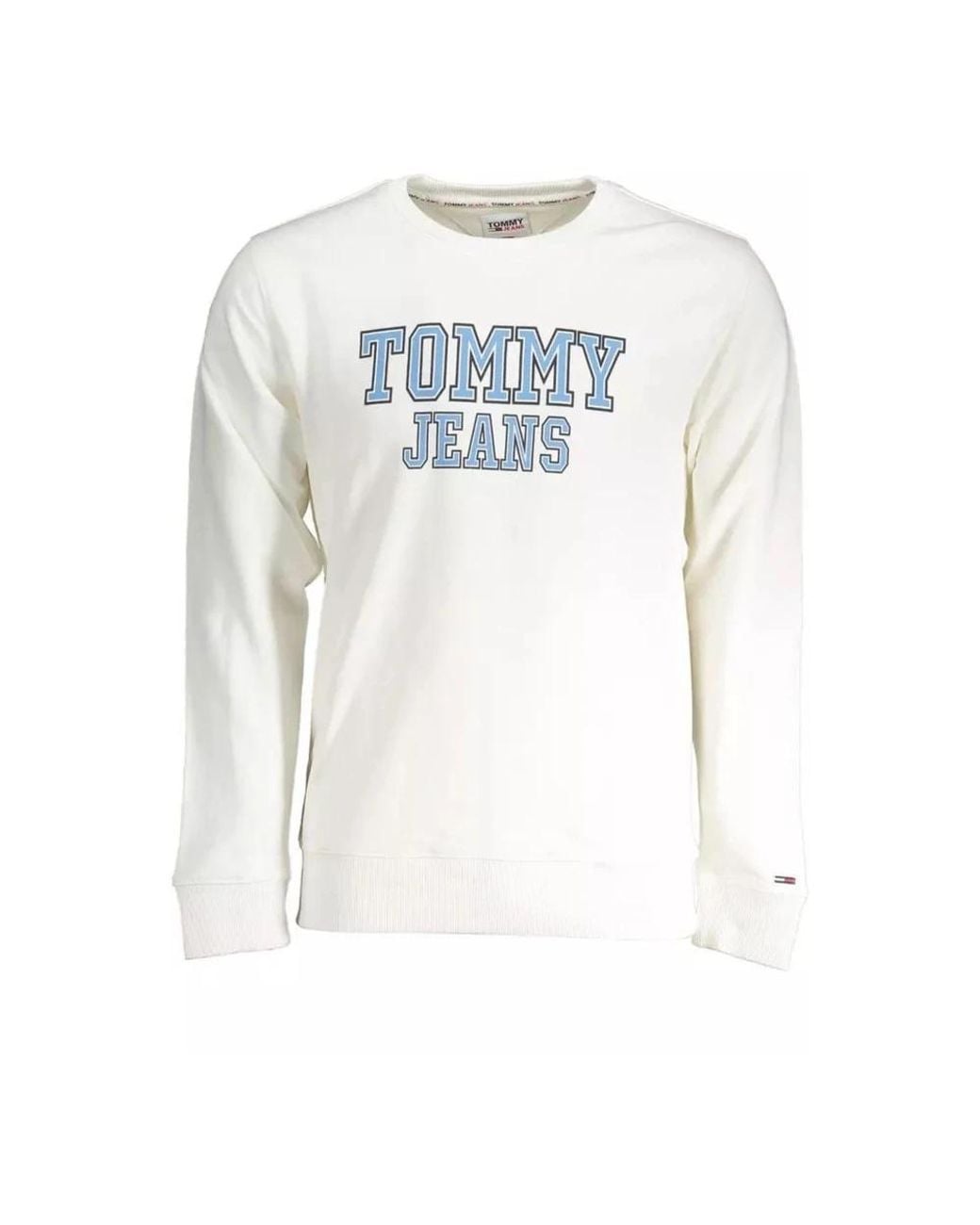 Elevate your casual wardrobe with this white Tommy Hilfiger sweatshirt. Crafted from 100% cotton, this long-sleeved jumper features a brushed fabric, round neck, and the designer's logo print. Made from 95% transitional cotton, this piece is perfect for men's fashion. Colour: white