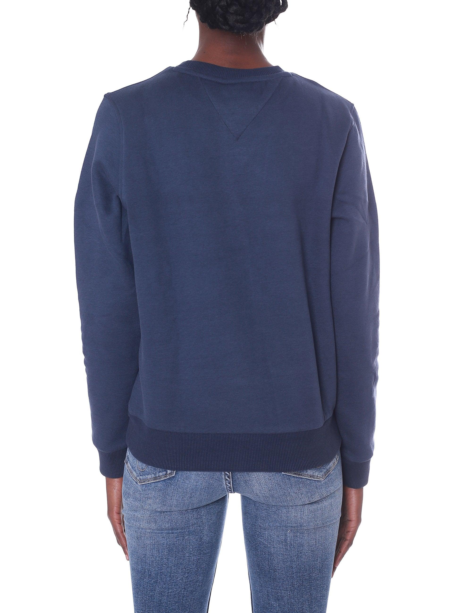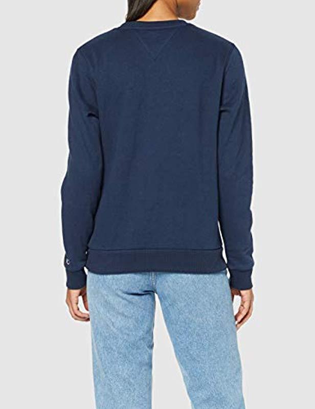 Women's sweatshirt by Tommy Jeans featuring a crew neckline ribbed finishings and finished with brand detailing to the front. Women's sweat top. Crew neckline. Ribbed cuffs and waistline. Regular fit. Brand detailing. Model is 5'10 and wears a size small.