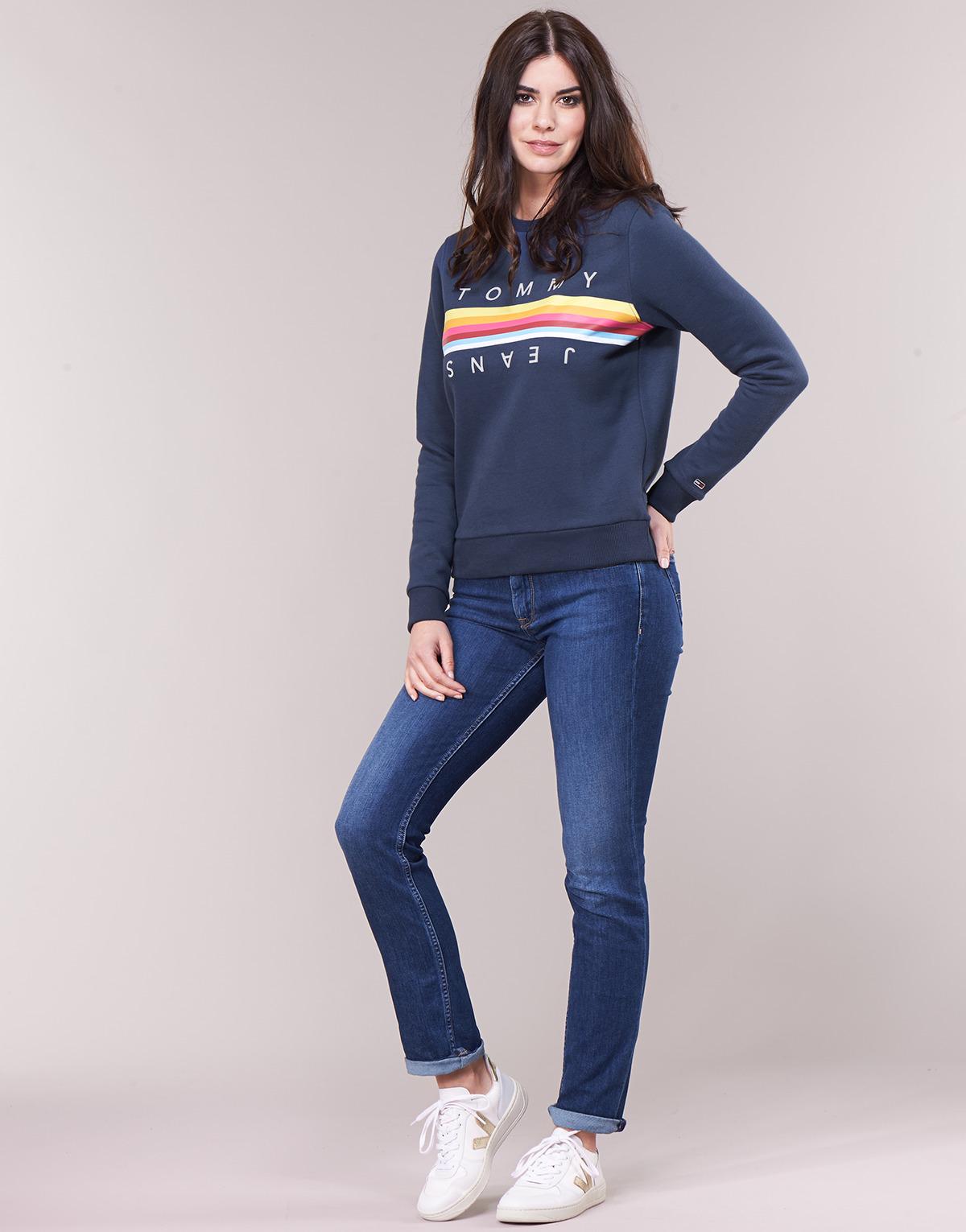 Tommy Jeans TJW RAINBOW TOMMY women's Sweatshirt in Blue. Colour: blue
