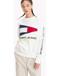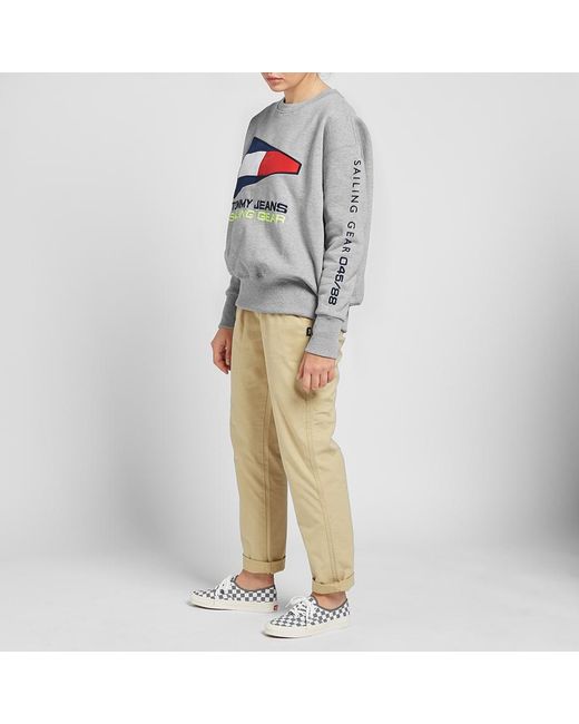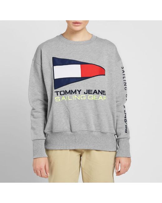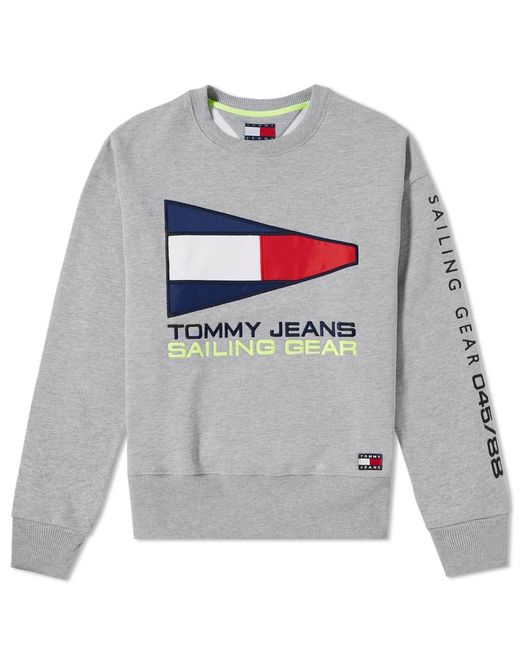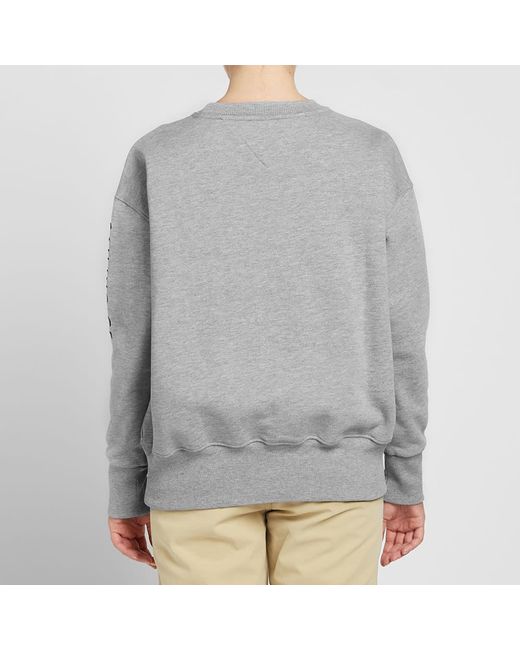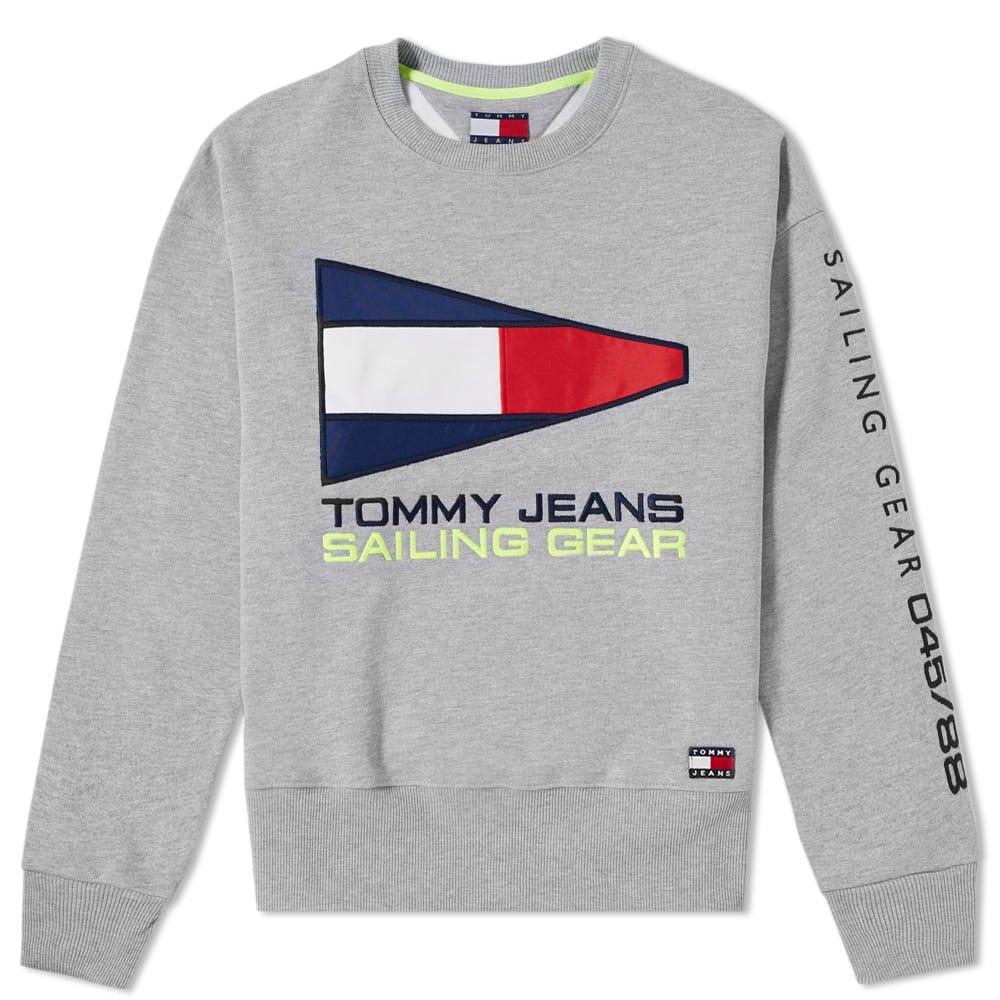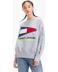 Styled in a classic grey tone and branded with nautical pride to the chest, this fresh crew sweat from Tommy Jeans' 5.0 capsule is a women's style that rides the wave of '90s nostalgia this season. Lined with a fleece-backed interior, this pullover is trimmed neatly with ribbed knits to its collar, cuffs and hemline. 60% Cotton, 40% Polyester. Fleeceback Jersey. Embroidered & Appliquéd Branding. Ribbed Crewneck, Cuffs & Hem. Colour: grey
