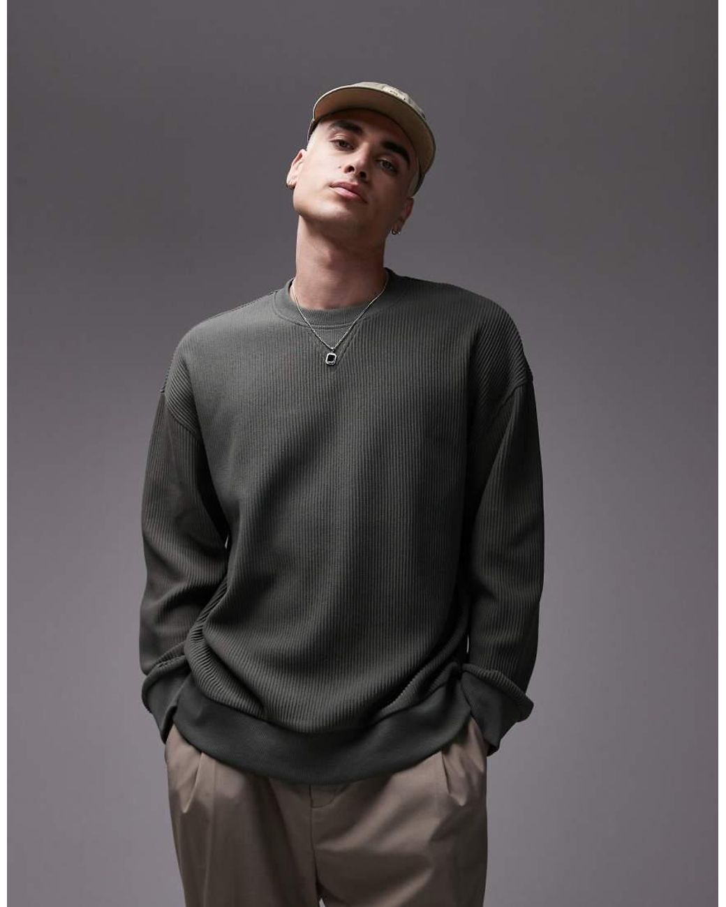 Men's Grey Oversized Fit Ottoman Crew Sweatshirt