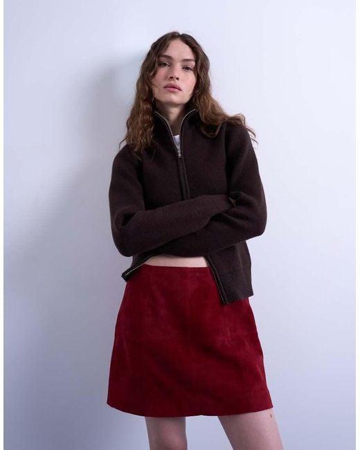 Skirts by Topshop This skirt is crafted from soft, textured fabric in a rich burgundy shade. The A-line design is complete with a high-rise waist and seam detailing. Cut to a regular fit, this piece is an everyday statement. Leather/Polyester. Colour: red