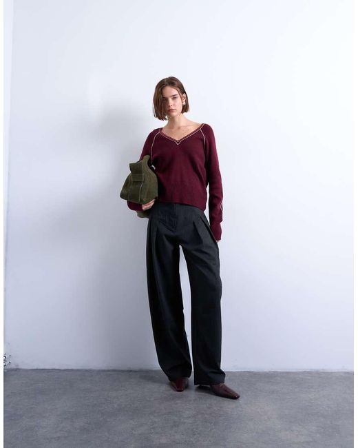 Trousers & Leggings by Topshop These trousers are crafted from herringbone in a grey shade. Featuring a dropped waist on a balloon leg, this style is complete with a concealed fly and belt loops. Polyester/Viscose/Elastane. Colour: grey