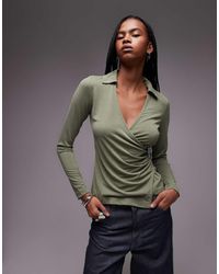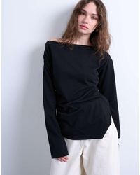 Tops by Topshop Sweetheart neckline Cap sleeves Slim fit. Cotton/Elastane. Colour: brown