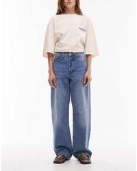 Jeans by Topshop This is Topshop Relaxed fit Stripe design Mid rise Belt loops Five pockets Branded patch. Polyester/Cotton/Cotton. Colour: blue