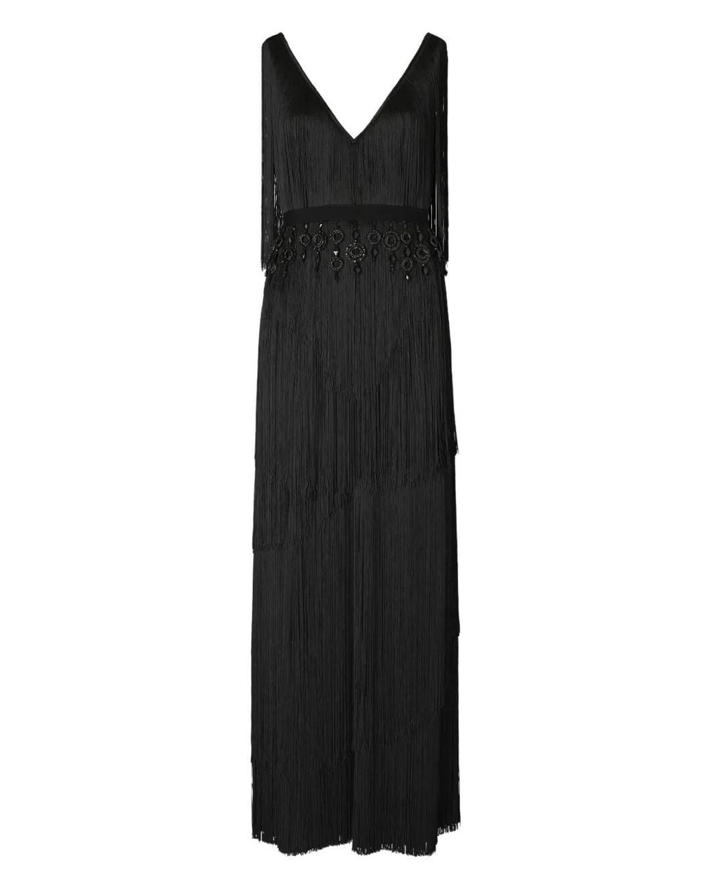 Women's Black Fringed Maxi Dress