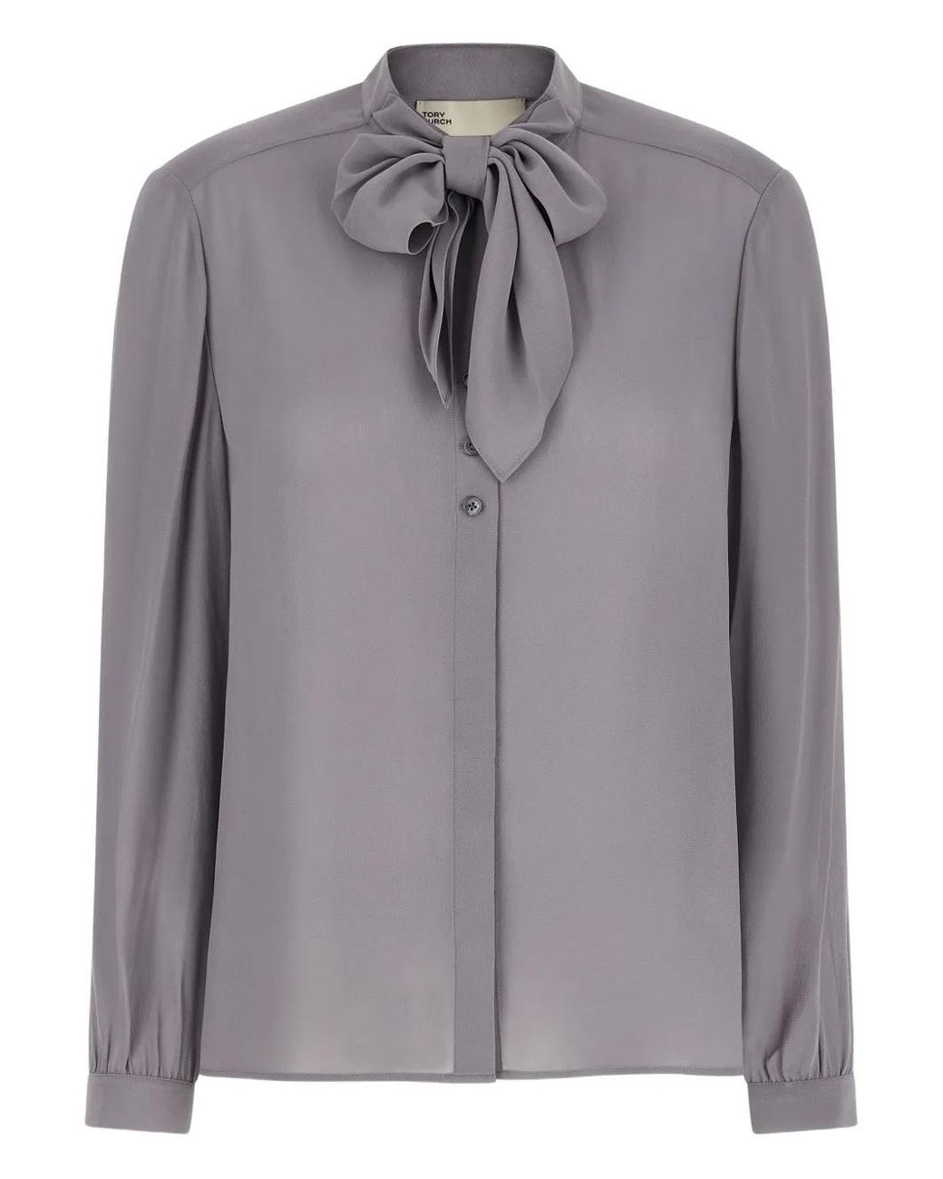 Grey tie-up bow mandarin-collar button closure slightly wide sleeves curled cuffs Size: 2. Gender: Female. Material:Viscose.