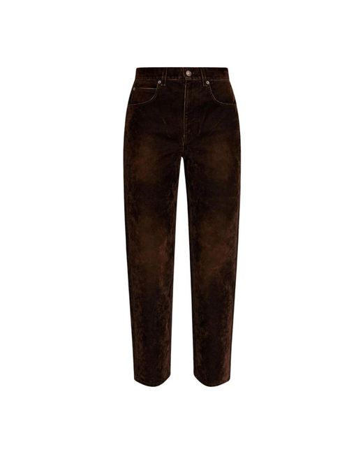 Tory Burch Straight Wide-Leg Jean offers a high-rise, relaxed straight-leg silhouette in classic denim. It's designed for everyday wear with a vintage-inspired distressed finish and signature back-pocket branding. Key attributes: Brown | Dark brown | Cotton | Five-pocket design | Zipper fly with shank closure | High rise | Straight wide leg | Distressed wash | Embroidered back-pocket logo | Dimensions & fit: High rise | Straight relaxed leg | Composition & care: 100% cotton | Machine wash Colour: black